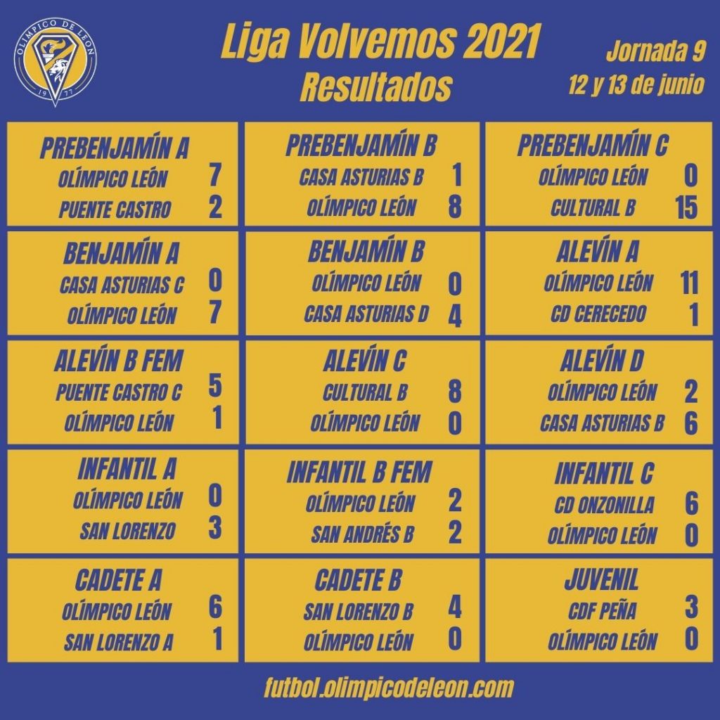 Estos son resultados de nuestros equipos en la novena jornada de la Liga Volvemos: